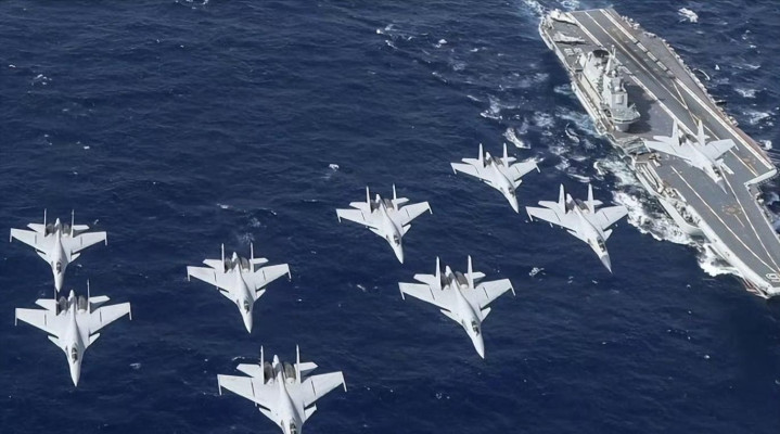 歼-16前脚刚走,辽宁舰上的歼-15T舰载机后脚就升空接力,无缝衔接地为轰炸机编队撑起了新的“保护伞”。这就是传说中的“空海一体”!